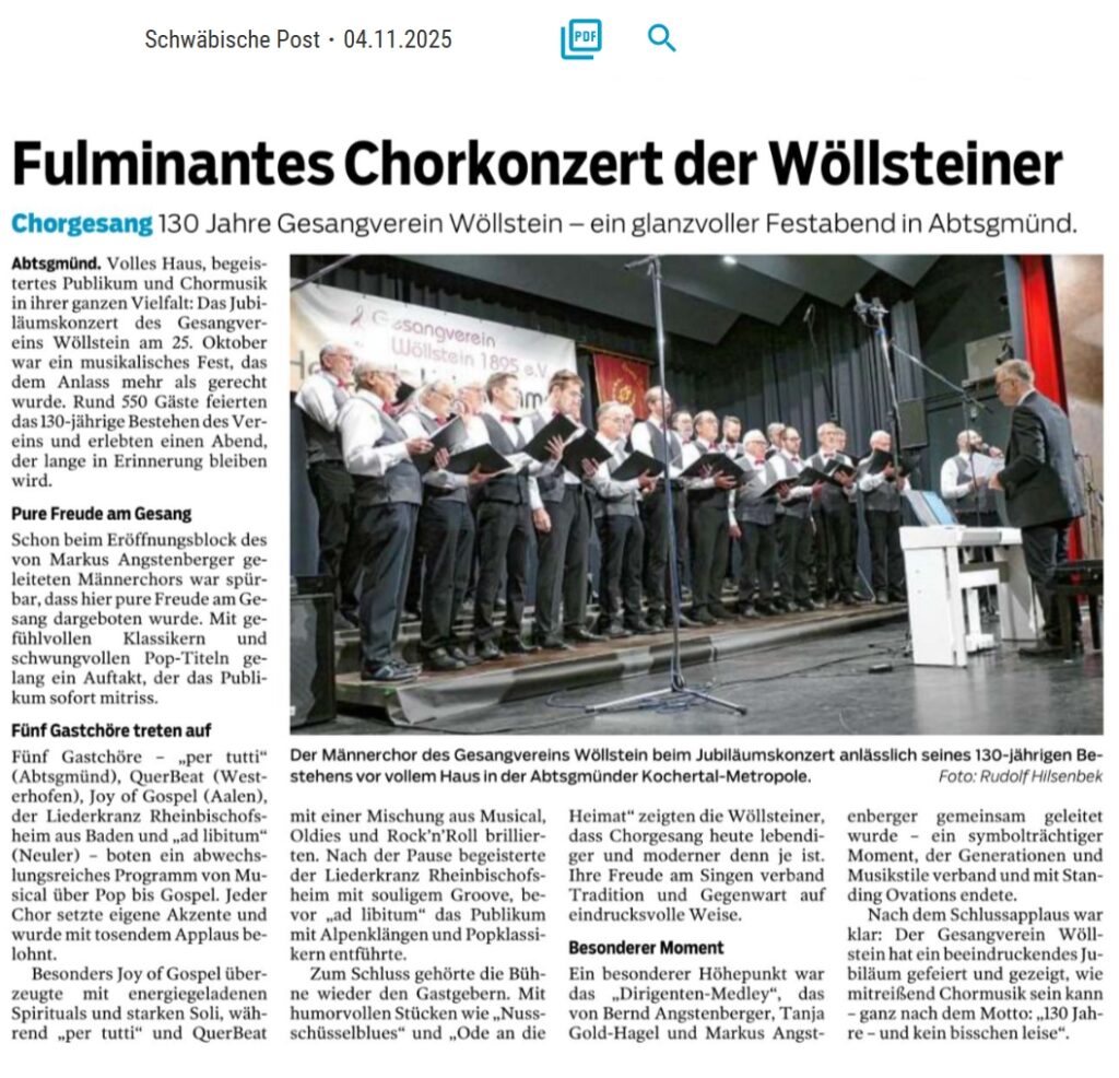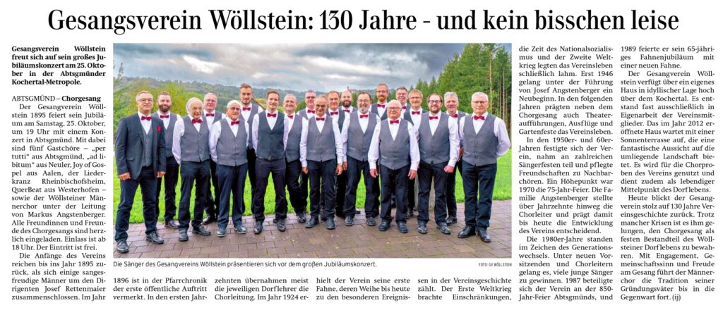 Presseberichte zum 130-jährigen Jubiläumskonzert am 25.10.2025 Vorankündigung: (Aalener Nachrichten / Ipf- und Jagst-Zeitung, 16. Oktober 2025) Nach dem Konzert: Pressemeldung Kocher-Lein-Bote 17.10.2025: Ankündigung des GVW-Jubiläumskonzerts 2025 Pressemeldung Kocher-Lein-Bote 07.11.2025: Bericht über das GVW-Jubiläumskonzert 2025